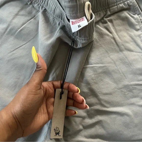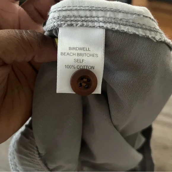 Stylish gray trousers with a relaxed fit. Features an elastic waistband and convenient side pockets.Birdwell Beach BritchesCORONADO PANT Size XL NWTDETAILSA 100% cotton elastic waist pant.Garment-washed for a broken in look and feel. Features signature Birdwell pocket flap with wood button closure.Bin19