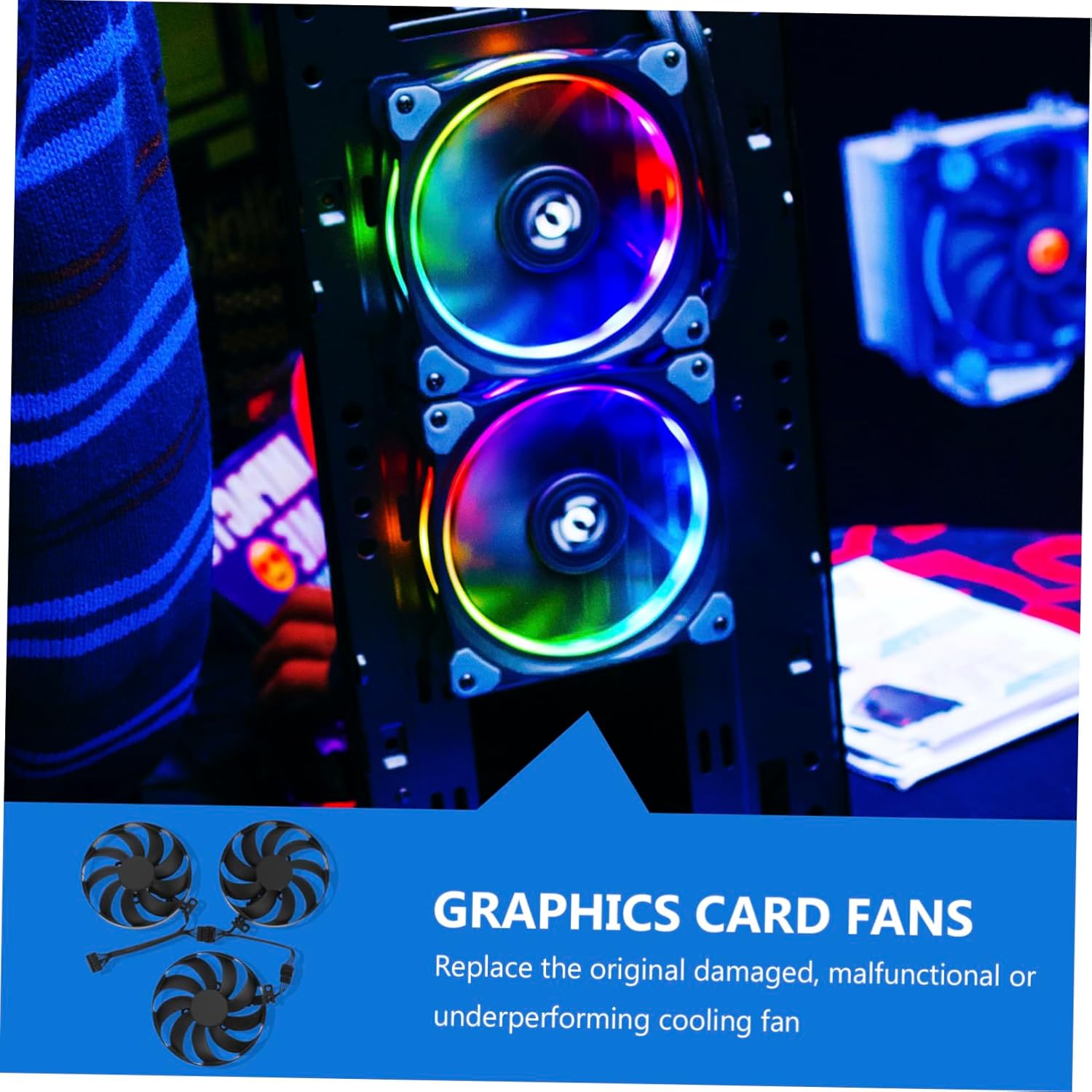 Package List 1 x set of GPU coolers Characteristics Voltage: DC 12V GPU Air Cooler -Material: GPU Cooler Power Connector: 7-Pin, 6-Pin, 4-Pin GPU Cooling Fan - Let out heat quickly from the bottom, prevent computer from overheat and damage Computer Fan. - Helping to bring out heat from your computer with this cooling fan Radiator Fan. - Made of ABS material, the cooler fan can be used for a long time Cooler Fan. - Using the theory of , high-performance wind wheel and volute, ensure the silent operation of the motor GPU Cooler. - Solid and sturdy enough to withstand heat paste corrosion and deformation Computer GPU Fan.Goods DescriptionCooling Fan The graphic card cooler is convenient and practical, with excellent texture, and without being easily damaged.Computer GPU Cooler This is a very practical graphic card cooler.Cooler Fan The exquisite craftsmanship can serve you well without breaking easily
