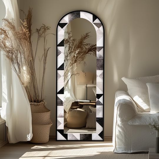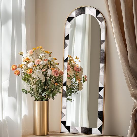 Arch Shaped Floor Mirror with Metal Frame – Gold, Black, or Silver | Leaning, Standing, or Wall-Mounted Full Body Mirror Add artistic charm and functional elegance to your space with our Arch Full Length Mirror, designed to make a bold statement in any room. Whether styled in a bedroom, hallway, or living room, this arched floor mirror enhances your interior with timeless beauty. The edges of the mirror consist of pictures in the colors of your choice printed on tempered glass using the UV printing technique. The mirror itself is mounted on top of this printed tempered glass, giving it a vibrant, durable, and luxurious finish that stands out in any setting. Measurements; TOTAL SIZE (Uv Printed Tempered Glass + Mirror) : 23,5’’W x 67’’ H ONLY MIRROR SIZE : 17’’W x 60,5’’ H Choose from three premium frame finishes—Arch gold mirror, sleek black, or arch floor mirror silver—and enjoy flexible use as a Standing Floor Mirror, Arched Wall Mirror, or casually leaned for a designer look. This is more than a Full Body Floor Mirror with Stand—it’s a piece of functional art. Multiple Placement Methods, This arched floor mirror comes with a U-shaped bracket, which you can freely place in the living room or bedroom. For your convenience in hanging on the wall, special hangers are designed on the back of the mirror.Our premium mirrors are crafted by gluing 4mm tempered glass to a 4mm mirror, combining durability and style. The tempered glass features UV printing for a glossy, vibrant look, while both the glass and mirror have smooth, grinded edges for safety. The hidden metal hanger ensures a sleek, ready-to-hang design, making it an elegant and functional addition to any room.
