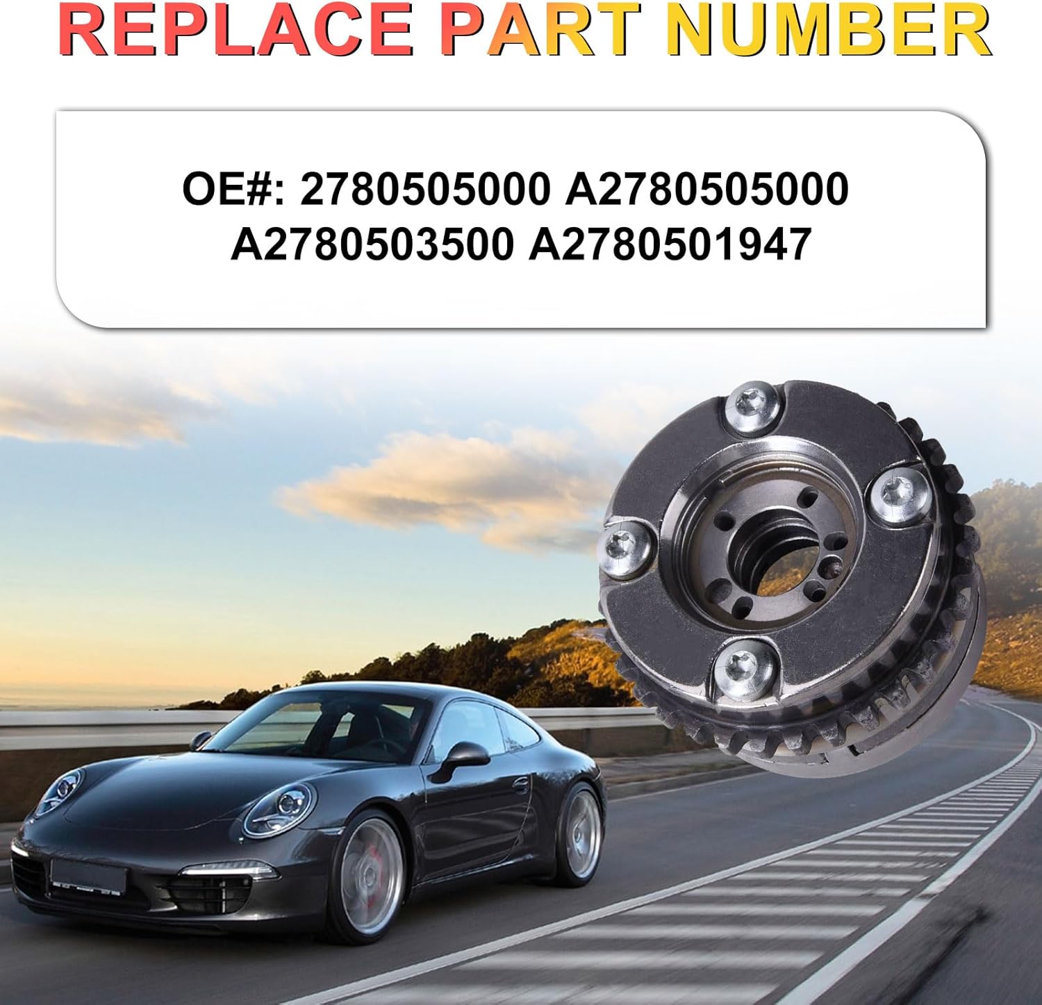 The Engine Timing Sprocket Gear Part Number:2780505000 A2780505000 A2780503500 A2780501947 This Camshaft Phaser Adjuster Replacement With: Fits for 2014-2012 CL63 AMG 5.5L Fits for 2018-2012 CLS550 4.7L Fits for 2014-2012 CLS63 AMG 5.5L Fits for 2018-2014 CLS63 AMG S 5.5L Fits for 2017-2012 E550 4.7L Fits for 2015-2012 E63 AMG 5.5L Fits for 2016-2012 E63 AMG S 5.5L Fits for 2018-2013 G63 AMG 5.5L Fits for 2014-2013 GL450 4.7L Fits for 2016-2013 GL550 4.7L Fits for 2016-2013 GL63 AMG 5.5L Fits for 2019-2016 GLE63 AMG 5.5L Fits for 2019-2016 GLE63 AMG S 5.5L Fits for 2019-2017 GLS550 4.7L Fits for 2019-2017 GLS63 AMG 5.5L Fits for 2017 Maybach S550 4.7L Fits for 2014-2012 ML550 4.7L Fits for 2015-2012 ML63 AMG 5.5L Fits for 2017-2012 S550 4.7L Fits for 2017-2012 S63 AMG 5.5L Fits for 2019-2013 SL550 4.7L Fits for 2019-2013 SL63 AMG 5.5L Fits for 2016-2012 SLK55 AMG 5.5L The Specification of Timing Camshaft Gear: Product Condition: Brand New Fitment Type: Direct Replacement Package includes: Left Intake Camshaft Adjuster Actuator Gear*1 Our Camshaft Adjuster Gear Product Features: (1)Stable performance, high reliability. (2)High-temperature resistant, long service life. (3)Easy to install, fast response. (4)Made of high-quality metal materials, safe and reliable. (5)Complete accessories, strong performance.