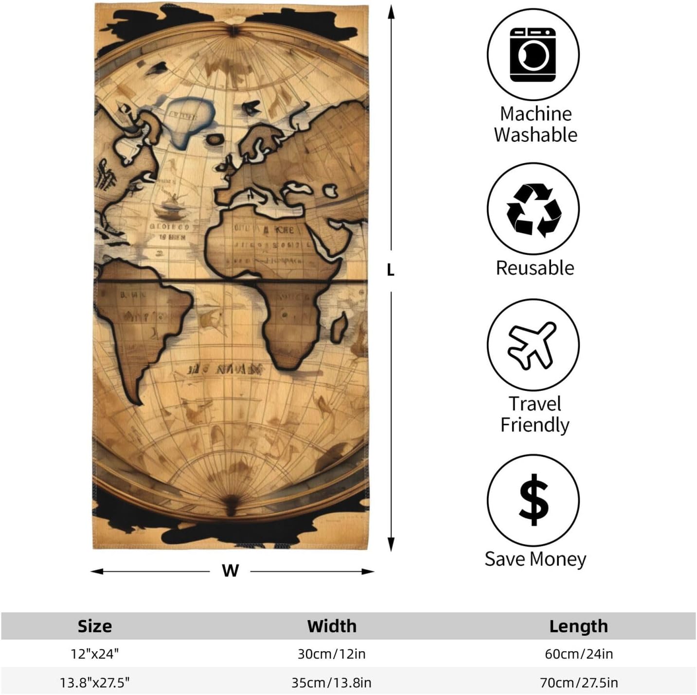 Crafted from premium polyester, the Ancient Map World Globe print Bath towels offer an indulgent touch, with their plush and gentle texture embracing your skin as you dry off after a long day. The high-quality material ensures excellent water absorption, making them highly practical for everyday use. Their fade-resistant nature means the colors remain vibrant even after multiple washes. With two size options, 12*24 inches and 13.8*27.5 inches, these Ancient Map World Globe print Bath towels can accommodate various preferences. The breathable fabric allows air to circulate, preventing that stuffy feeling and providing a refreshing experience.