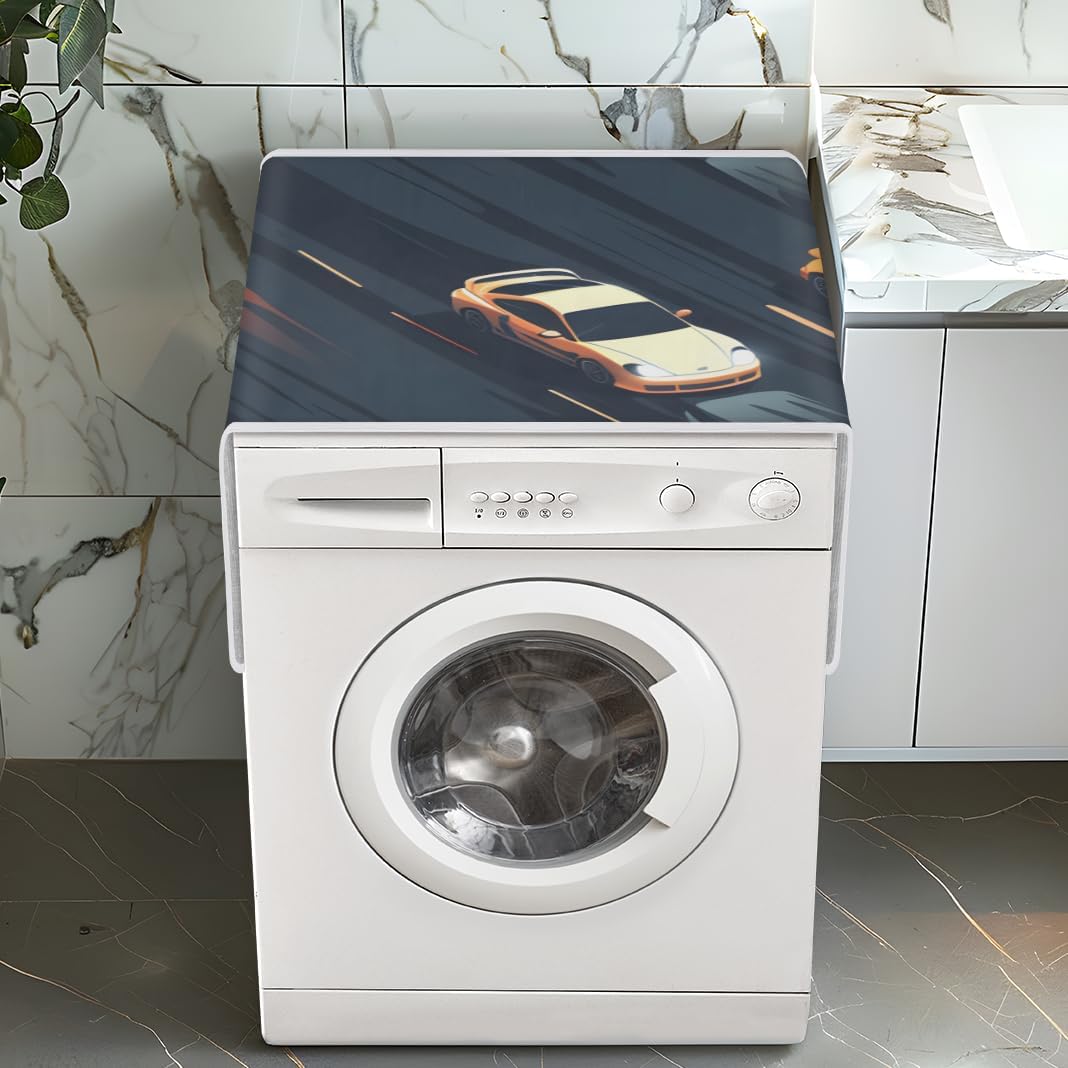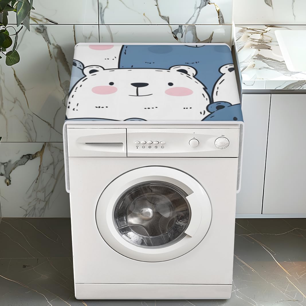 Description: Packing includes: 1 x Washer Dryer Dust Cover Product size: 30.9 * 18.5 inches. Features: Unique Design:The dust cover of the dryer has three side pockets on the left and three side pockets on the right.The edge is reinforced and sewn to make the refrigerator and washing machine top cover more strong,with a large capacity and convenient storage. Washing machine dust cover,made of waterproof polyester fiber and foldable,washable design,cover the refrigerator and washing dryer,decorate the home. Modern stylish style,pockets on each side,convenient for storing small items and saving space. Easy to clean:Machine or Hand Washable.Do not bleach. Multi-purpose:In addition to being used as a cover for washing machines and dryers,the multifunctional cover can also be used as a cover for fridge cover,microwave ovens cover,audio covers and other electrical appliances top cover.Easy to match any style of refrigerator and washing machine.
