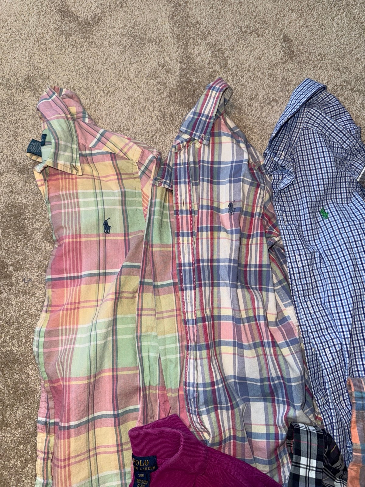 Boys lot of Ralph Lauren button down long sleeve dress shirts, size 8, in excellent condition, no stains or holes, from a smoke free home, no missing buttons, 8 button down dress shirts and one long sleeve polo shirt. 9 tops in total