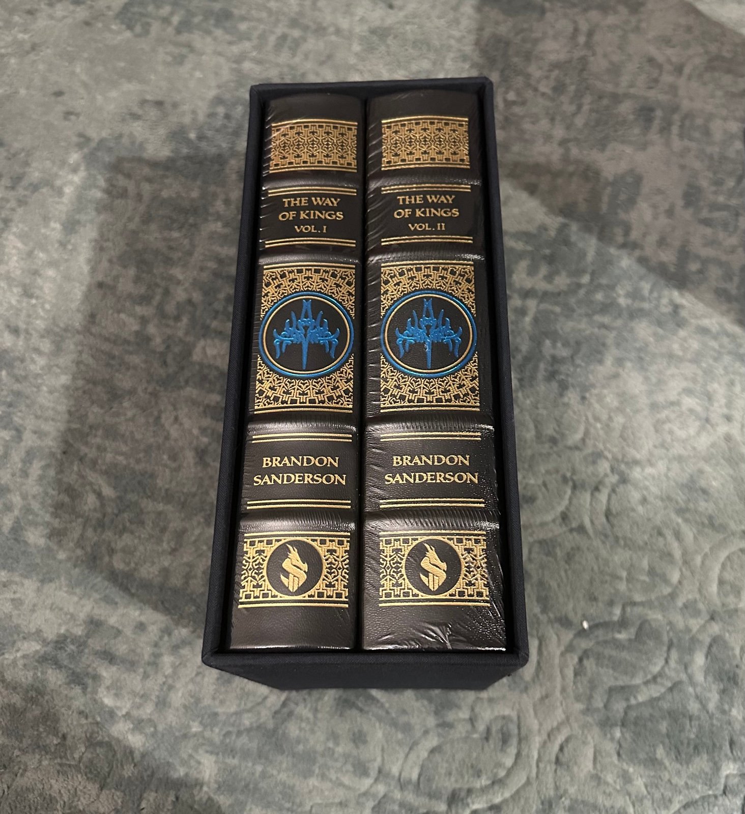 Includes The Way of Kings Vol. 1 and Vol. 2 and Words of Radiance Vol. 1 and Vol. 2, along with all swag pictured. All signed, unread.