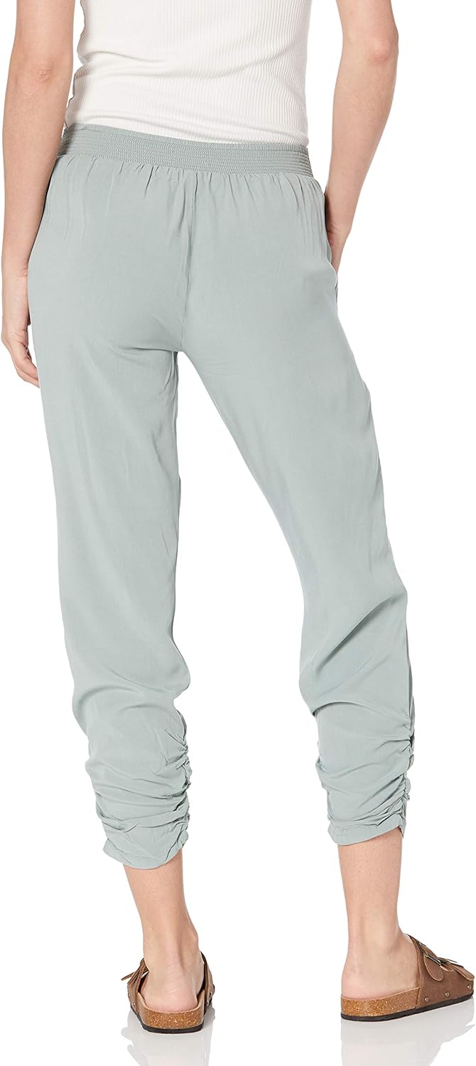 A classic beach pant to wear over a bathing suit or around a bonfire. These pants are made of a silky material and are also designed to be dressed up with a cute top and sandals. The ruched leg opening at the bottom is a sweet and flattering detail.