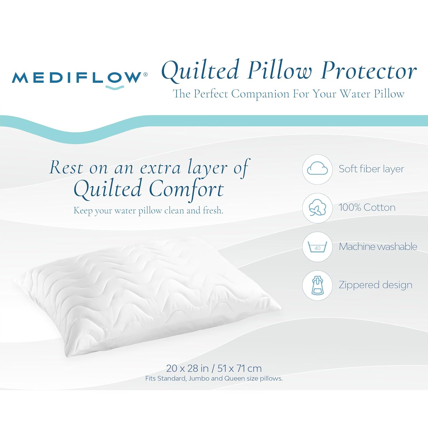 Experience Cool Comfort with the Elite Cooling Gel Memory Foam Water Pillow & Quilted Protector Bundle Revitalize your sleep with the Elite Cooling Gel Memory Foam Water Pillow and Quilted Pillow Protector Bundle. This bundle combines Mediflow’s advanced waterbase technology with gel-infused memory foam for an ultra-cool, luxurious sleep experience. Paired with our Quilted Pillow Protector, it ensures not only supreme comfort but also long-lasting protection for your pillow.