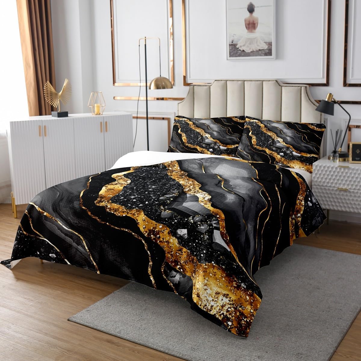Good presents and blessings Makeover your bedrooms every season with our bedspread sets: Good item for your room,girls boys youth room,master bedroom Also a great present idea for your mom,dad,sister, brother,grandma,wife,husband,daughter,son and all other beloved Size Information: 1 Twin Size quilted bedspread 68"W x 90"L and 1 quilted pillow sham 30"W x 20"L 1 Queen Size quilted bedspread 90"W x 90"L and 2 quilted pillow shams 30"W x 20"L 1 King Size quilted bedspread 104"W x 90"L and 2 quilted pillow shams 36"W x 20"L Useful and practical A luxurious product for homes,dorm rooms,hotels,guest rooms:Practical to use for being polyester,feels like cotton which is Soft and Breathable Unique design Vivid Colors won't fade thanks to new 3D digital printing methods: These unique designs match well with various color palettes of your rugs,curtains,headboard,furniture and all other decor accessories Personalized As manufacturers of digital printed home textiles,we follow current trends and bring you the latest home fashion Either a present to your family or friend,relative or boyfriend girlfriend, or to yourself,the item should be interesting and authentic Note The Bedspread and Pillow Shams are printed on the Front Side Only the back of them are white colored: Comforter is Not Included in the set