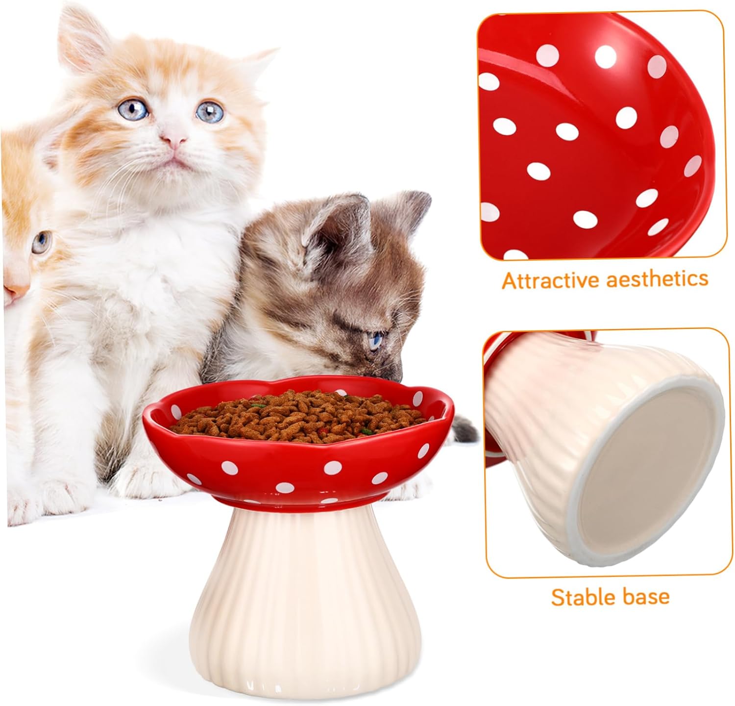 Package Include 1 bowl Features -Secure and stable: The ceramic foundation makes sure that this cat feeding bowl remains in place during feeding time, no spills and untidiness ceramic cat dish. -Simple cleaning: The ceramic cat bowl with a smooth surface facilitates effortless cleansing, so your lovely cats can always enjoy food in a clean environment small cat bowl. -Material:Ceramic whisker friendly cat bowl elevated -Color:Red feeder cat -Product Info:Tall cat bowl -Raised feeding station: The raised cat bowl encourages a healthier dining habit for your cat, making their neck feel more comfortable cat bowls raised. -Comfort and convenience: Designed to be shallow and wide, the pet bowl is friendly to cat's whiskers, bringing optimal puppy bowls. -Attractive aesthetics: The mushroom-shaped cat bowl brings a delightful element to the feeding space in your house, serving as an elegant accent ceramic pet bowl. -Size: 15.00X15.00X13.50cm/5.89X5.89X5.31in Cat FeederGoods Informationcat bowls whisker friendly elevated Crafted from ceramic, this cat bowl is designed to be stable and resistant to tipping, making mealtime a breeze for your cat.whisker friendly cat bowl elevated The elevated design helps reduce strain on your cat's neck and joints, healthier eating habits.cat food dish Our Mushroom-Shaped Cat Bowl blends elegance with practicality