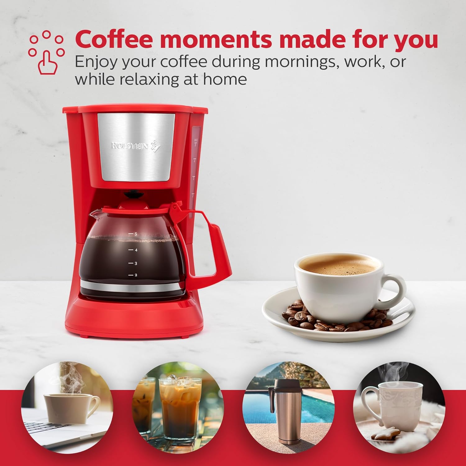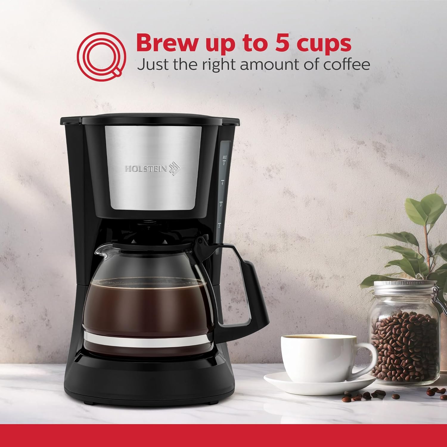 Start your morning right with the Holstein Housewares 5 Cup Drip Coffee Maker—designed to deliver rich-tasting, freshly brewed coffee with maximum convenience. With a 750ml capacity, this compact coffee machine is perfect for small households, offices, apartments, or dorm rooms. Its sleek design, featuring a plastic body with stainless steel accents, adds a modern touch while saving precious countertop space. Brewing is simple thanks to the one-touch operation and ON/OFF switch, while the non-stick warming plate keeps your coffee hot without burning it. The auto pause and serve feature allows you to pour a cup mid-cycle—no need to wait for the full pot. A built-in 30-second anti-drip function ensures a mess-free experience every time. No paper filters? No problem. The included reusable nylon filter and removable cone basket make brewing and cleaning easy while reducing waste. The transparent water window lets you monitor levels precisely, and the included measuring spoon helps you get the perfect ratio of grounds every time. Whether you're a student, a busy professional, or just love a good cup of coffee, the Holstein Housewares 5 Cup Coffee Maker makes your daily routine more enjoyable and efficient. It's the ideal solution for anyone who appreciates a compact, reliable, and eco-friendly coffee machine.