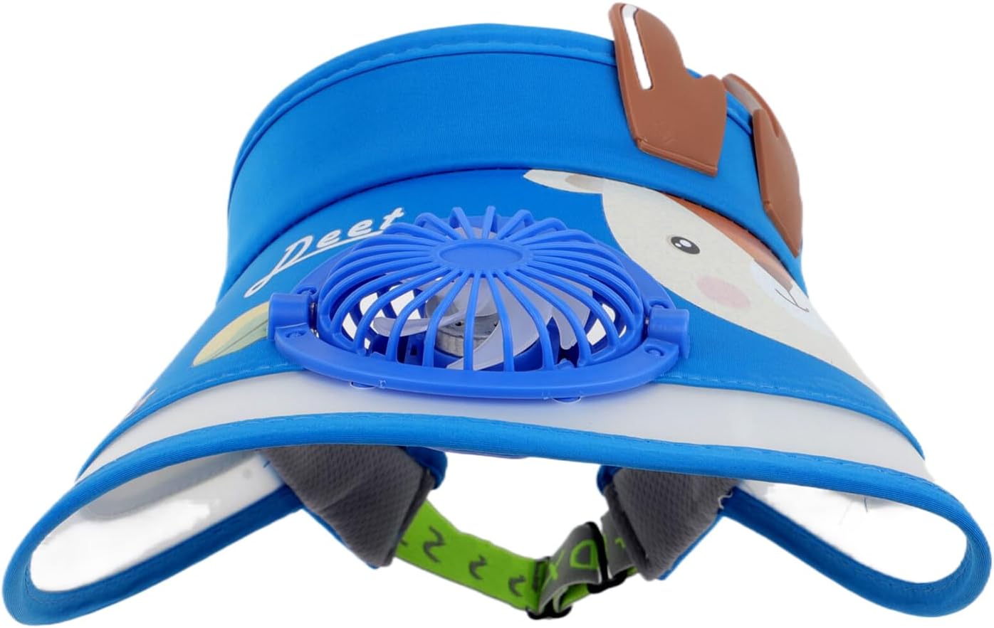 Holiberty Kids Sun Visor Hat with Builted-in Rechargeable Fan Cute Baby Boys Girls UPF50+ Summer Beach Trucker Hat Large Brim Cooling Outdoor Baseball Golf Visors Fan Caps for Children 3-10Y High Quality Fan Visor Hat The fan visor is made of PVC material, no bad smell, strong and durable. The forehead part is made of soft absorbent material, which absorbs sweat and is non slip, soft, and comfortable Large Area Sun Protection The enlarged and widened brim of these hats provides ideal sun protection; The open top design allows for ventilation and cooling, ensuring optimal comfort even in hot summer conditions Three Settings Wind Speed Fan visor hat built in three speed electric fan, just click the button to adjust the wind speed; It can work continuously for 2-3 hours on the lowest speed, which is perfectly suited to travel needs and is rechargeable