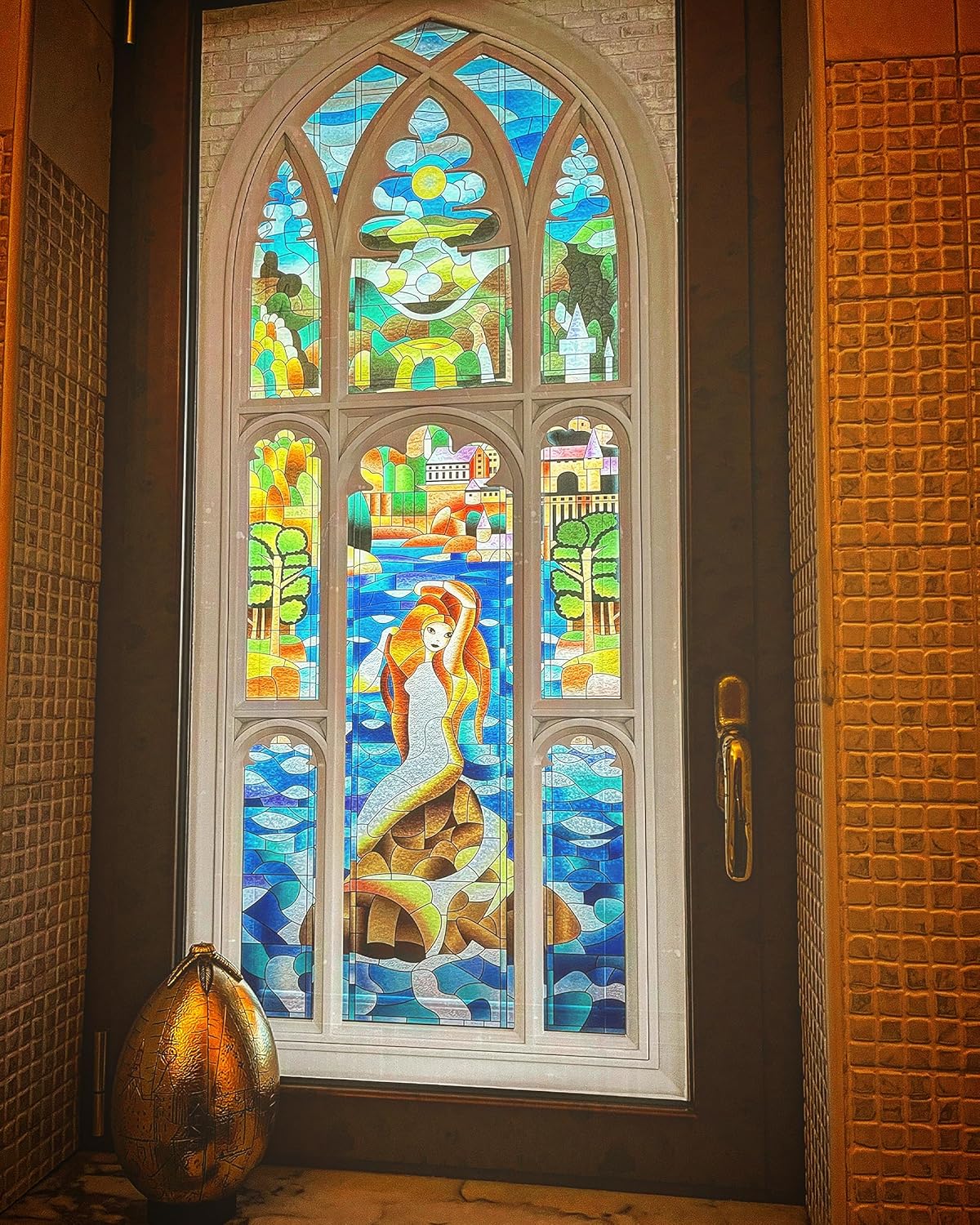 Mermaid Stained Glass Gothic Window.Unique design by WonderWalls. Sticker for door, wall, window or fridge. One whole piece! Materila: vinyl. Made in Europe. Features: durable, easy to use, ecology friendly, washable, fire rated, UV resistant, removable without damaging the surface. It can be installed to any smooth surfaces: walls, doors, fridges, windows Works on panelled doors. Application requires no paste or glue. Comes rolled in a durable tube. Detailed instruction will be attached to your order. Each item takes minutes to apply and provides a focal point in any space. Take advantage of our photo-quality prints and enter the gateway to endless decorating possibilities. When you are looking to spice up your home decor, you must get creative and uncover the latest trends. The newest type of interior decoration is a self-adhesive door wrap. It is a wonderful way to add beauty and interest to a room.