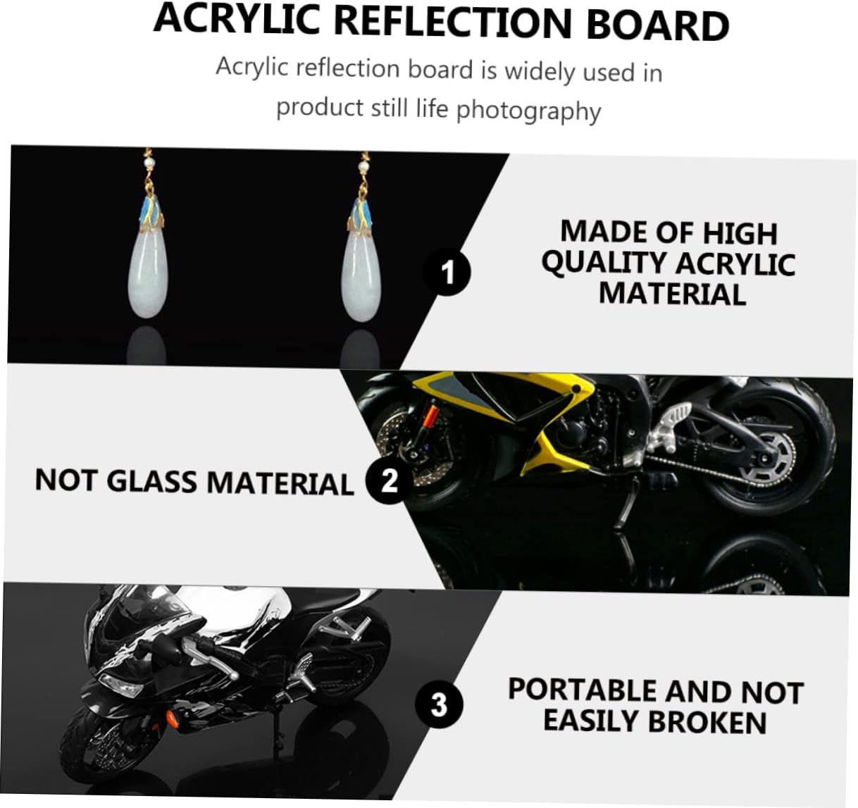 Package List 1 x reflection board Features - Size: 40.00X40.00X0.20cm/15.72X15.72X0.08in Photo Supply. - Material: Acrylic props for photoshoot. - Acrylic mirror reflection board makes items with beautiful reflections, you will receive superior photography effect backdrops for photoshoot. - appearance and delicate details ensure its popularity, deserve your choice photography accessories. - Reflective board can be used as photography background, and it is a perfect present for your friends who like photography photo props for photography. - Perfect for small items, such as jewelry, watches objects, nice photo background ornaments photo props. - Produced by acrylic material, and durable long time use Photo Accessory.Goods Descriptionphoto props for photography It's modern, stylish and fashionable.photography prop This is a reflective mirror board for photography.accessories for product photo It is very useful, comfortable and practical tool 's home! With this tool You can keep Your item more beautiful and you can take good photos with this.photography for jewelry With , it is not easy to break
