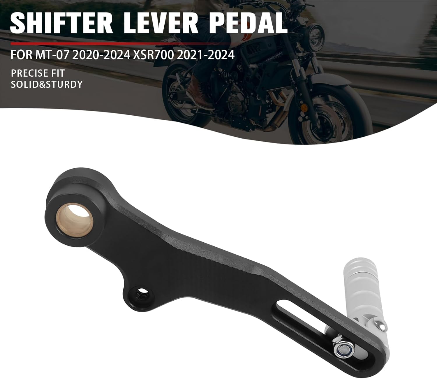 Color: Black Length:155mm/6.1 inchPackage Includes: 1 x Aluminium Gear Shifter Lever Material: High Tensile Strength Aluminum ConstructionFitment: Replacement for Yamaha MT-07 MT07 2020-2024 XSR700 2021-2024 Foldable Gear Shift LeverFEATURE:Easy to install, installation instructions not included;When the vehicle falls down, it can rebound to protect the gear lever from breaking;Brake pedal pad with a unique pattern that is anti-slip, making your brakes safer and faster;Made of high strength and high tensile strength aluminum construction, which is wear resistant, not easy to break,high class quality and very long-lasting;The surface of this motorbike brake pedal lever is polished for a smooth and delicate appearance and strong structure.