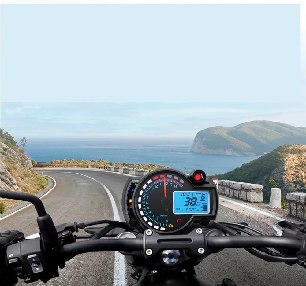 Before purchasing, please make sure the product size is suitable for your motorcycle vehicleMotorcycle Tachometer Digital Motorcycle Odometer Speed Gauge Meter Adjustable MAX 299KM/H Moto DashboardSpecifications:Made of ABS plasticColor: blackSize: 140 * 99mm / 5.5 * 3.9inSpeed Sensor Cable Length: approx.125cm / 49.2inSpeed Sensor Size(L * D): 40 * 12mm / 1.6 * 0.5inWorking Voltage: DC 12VSpeed Display Range: 0~299km/hOdometer Display Range: 0~99999.9kmTrip Meter: max.999.9kmPackage List:1 * Motorcycle Tachometer1 * Speed Sensor2 * Magnets
