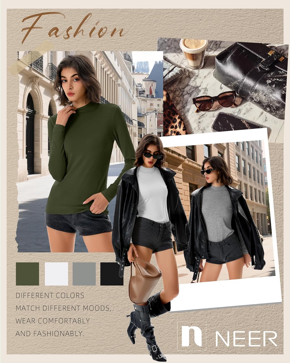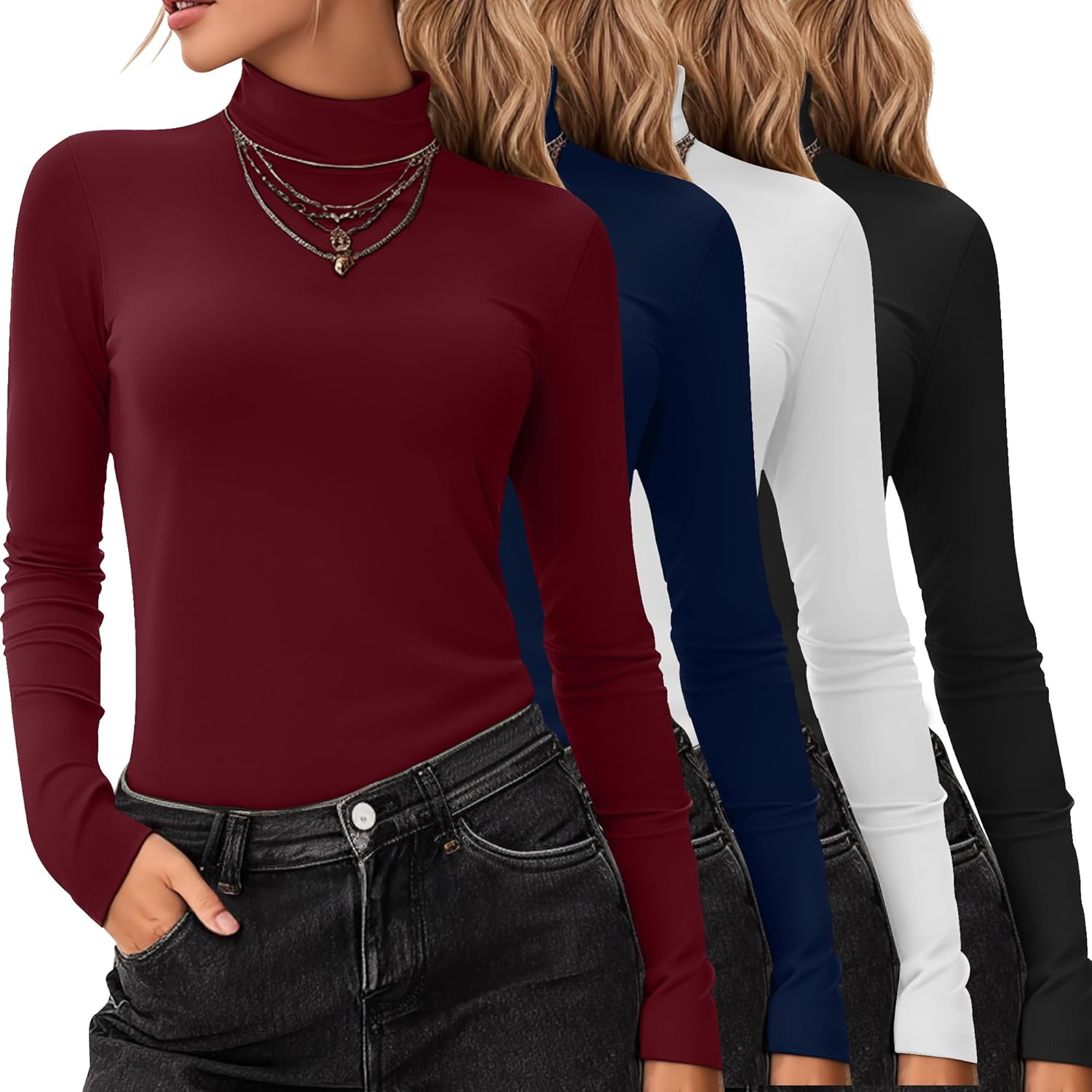 Features: Long Sleeve Shirts: Women's cotton turtleneck tops have long sleeve and mock turtleneck design to keep your neck warm. Soft fabric resists the cold, making you more comfortable in cold weather. Easy care: Washer and dryer safe. Recommend to wash in cold water and tumble dry low or line dry. Specifications: Material: 65% Cotton, 30% Polyester, 5% Spandex Package Includes: 4 x Turtleneck long sleeve shirts for women Notes: Manual measurement, please allow slight errors on size. The color may exist a slight difference due to different screen displays