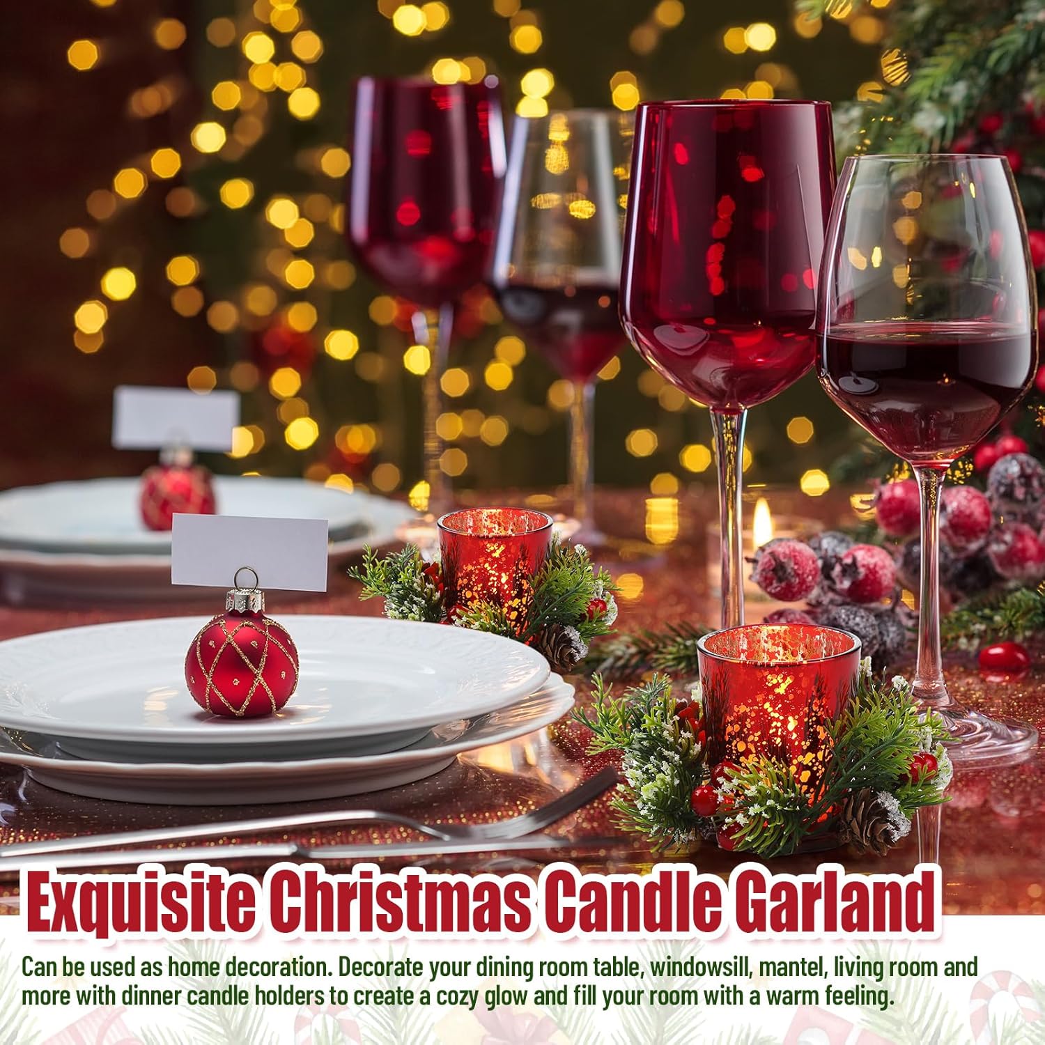 Features: Blend of traditional and modern aesthetics: This Christmas small candle rings wreaths neatly encapsulates both traditional and contemporarily modern aesthetics. The blend of snowy pinecones and berries brings back to a conventional Christmas tableau, while the minimalistic design of the candle holder adds a dash of modernity that suits your home interior. Easy to integrate: Despite its distinct Christmas theme, this taper candle ring fits elegantly into your home decor. Its versatile look ensures that it can stand alone as a centerpiece or blend with other Christmas decorations. Its compact size also allows it to fit comfortably onto your table, mantle, or window sill. Specifications: Color: red Size: Glass holder: about 2.7 inches high Wreath: about 5-6 inches wide in outer diameter Package includes: 6 x Christmas candle holder 6 x Snowy pinecone berry candle rings Notes: Manual measurement, please allow slight errors on size. The color may exist a slight difference due to different screen displays.