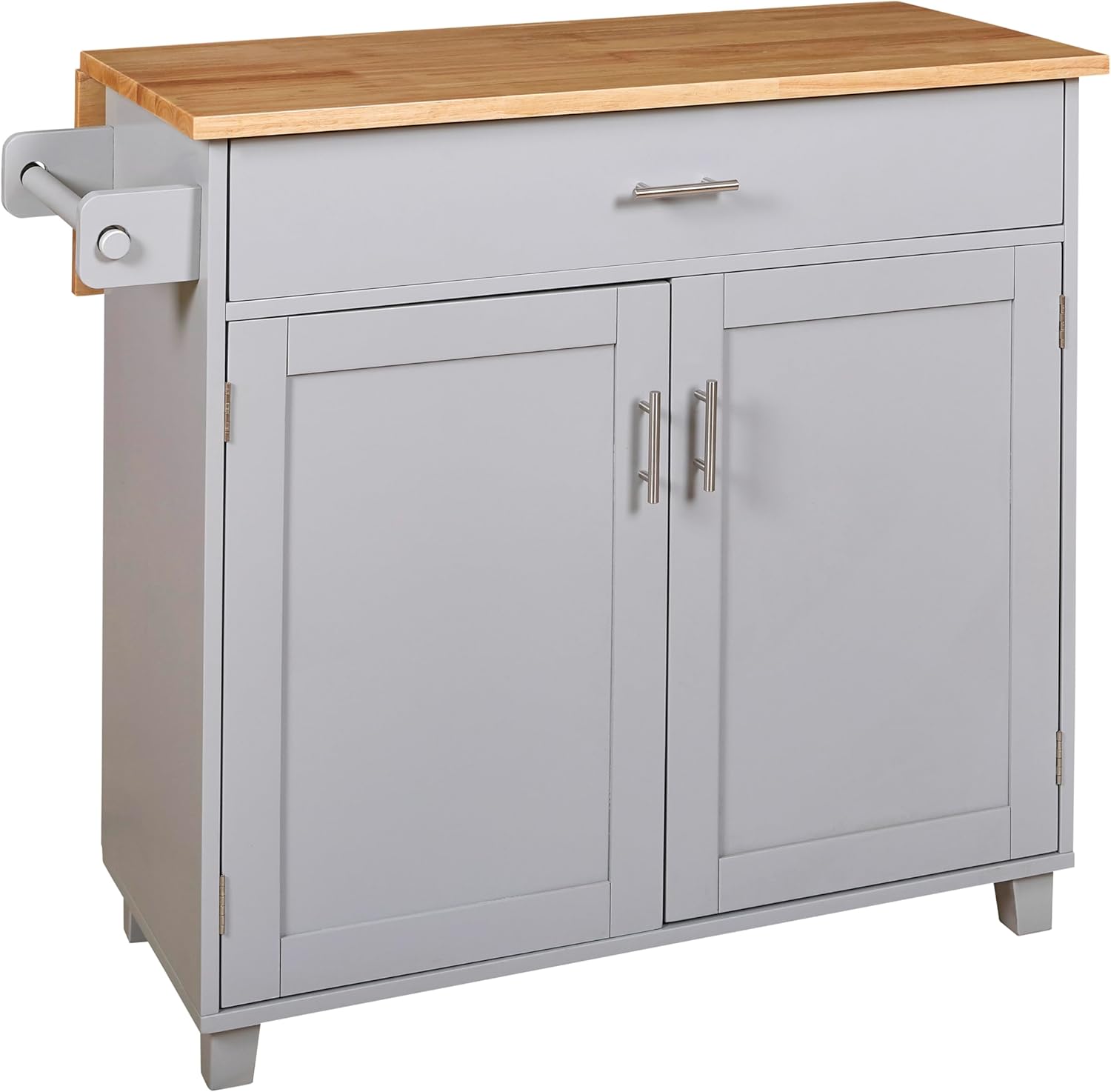 Versatile Rolling Kitchen Island with Ample StorageUpgrade your kitchen with the LOPOO Rolling Kitchen Island, a versatile solution designed to provide additional workspace and storage. Featuring a high-quality rubber wood top and practical internal storage racks, this kitchen cart offers the perfect blend of style and functionality for any modern home.Specifications:Top Material: Solid Rubber WoodDimensions: 39" x 25.7" x 34"Drawer: Spacious with DividersStorage Racks: Internal, Inspired by Refrigerator DoorsShelf: AdjustableBase Options: 4 Wheels (2 Locking) or Solid Wood FeetAssembly: Simple, with Included InstructionsPerfect For:Expanding kitchen storageCompact kitchen or dining areasProviding additional workspaceMobile or stationary kitchen needsWhy Choose the LOPOO Rolling Kitchen Island?The LOPOO Rolling Kitchen Island offers a durable and flexible solution for modern kitchens. With its solid rubber wood top, spacious drawer with dividers, and convenient internal storage racks, it combines style and functionality. Whether you need a mobile cart or a stationary island, this versatile piece adapts to your needs, making it a must-have addition to your home. Enhance your kitchen's efficiency and organization with this elegant and practical kitchen island. Order today and experience the convenience and style of LOPOO.