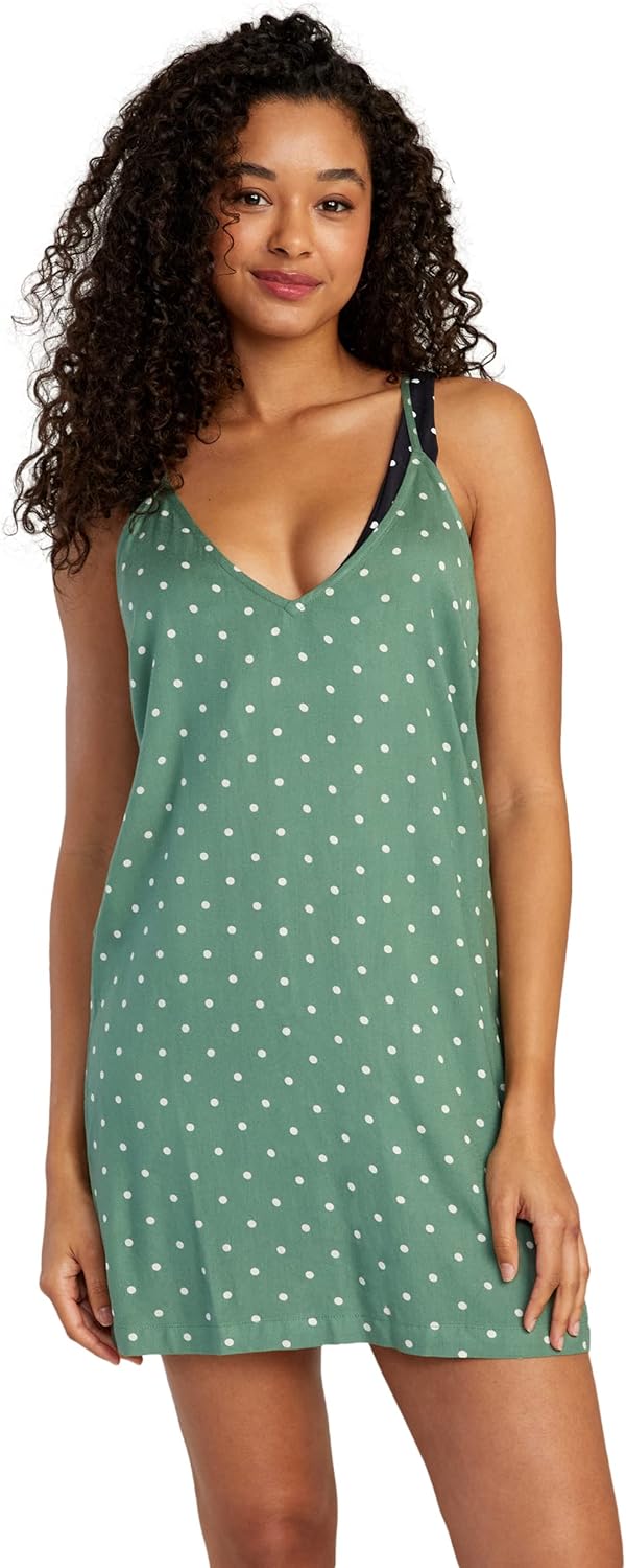 Woven v-neck mini dress. Strappy slip dress silhouette Thin adjustable straps that tie at the center back. Yarn dye color.
