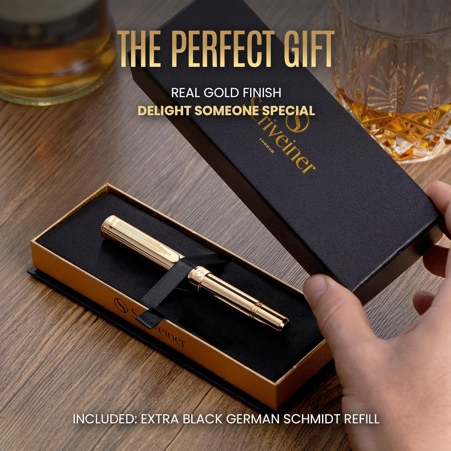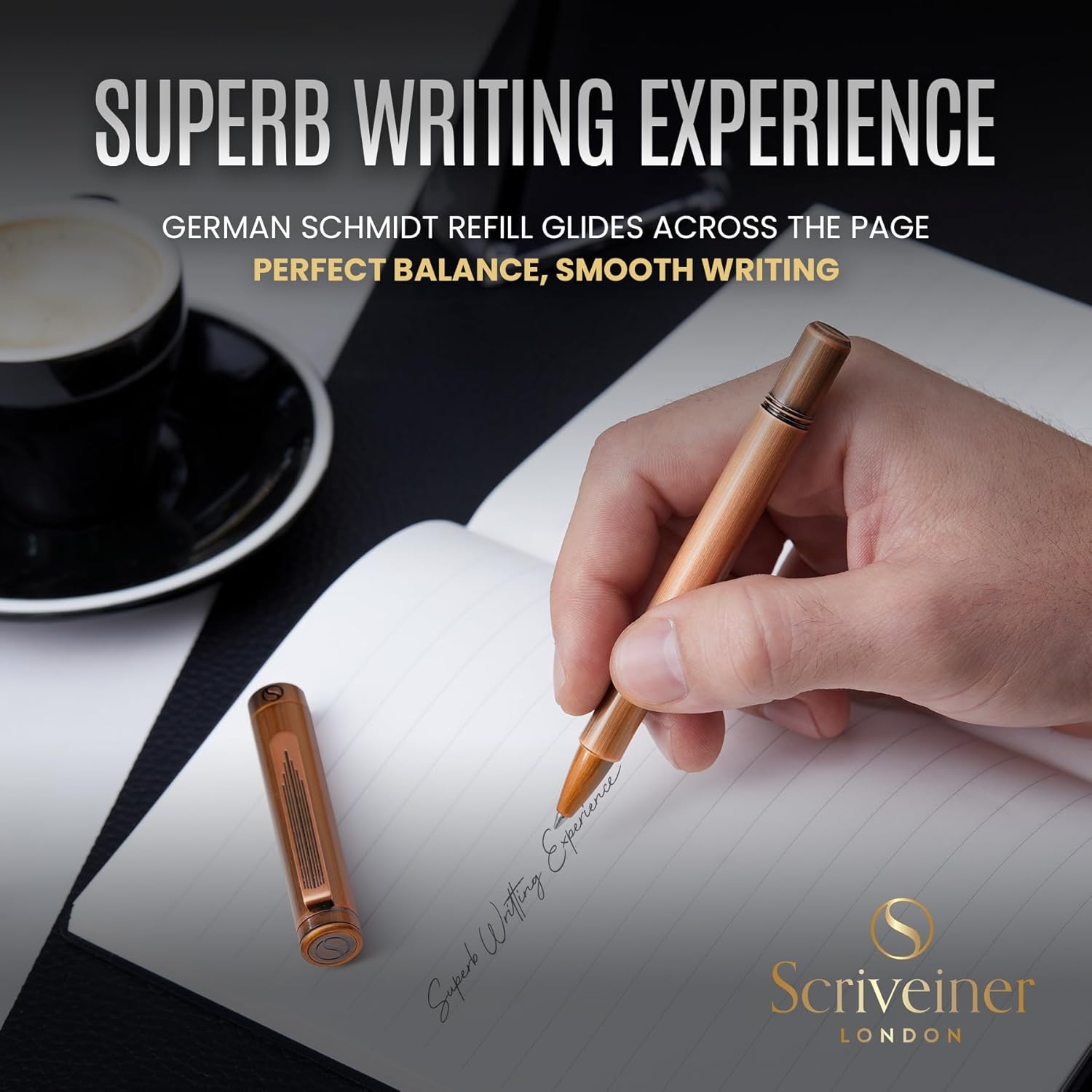 • Transcribe your thoughts effortlessly – We use the Schmidt liquid ink system from Germany which allows your pen to glide smoothly across the page. This combines the ink feel of a fountain pen with the convenience of a ballpoint and gives a superior writing action to gel ink pens. This is a luxury pen designed for those who love to write every day.