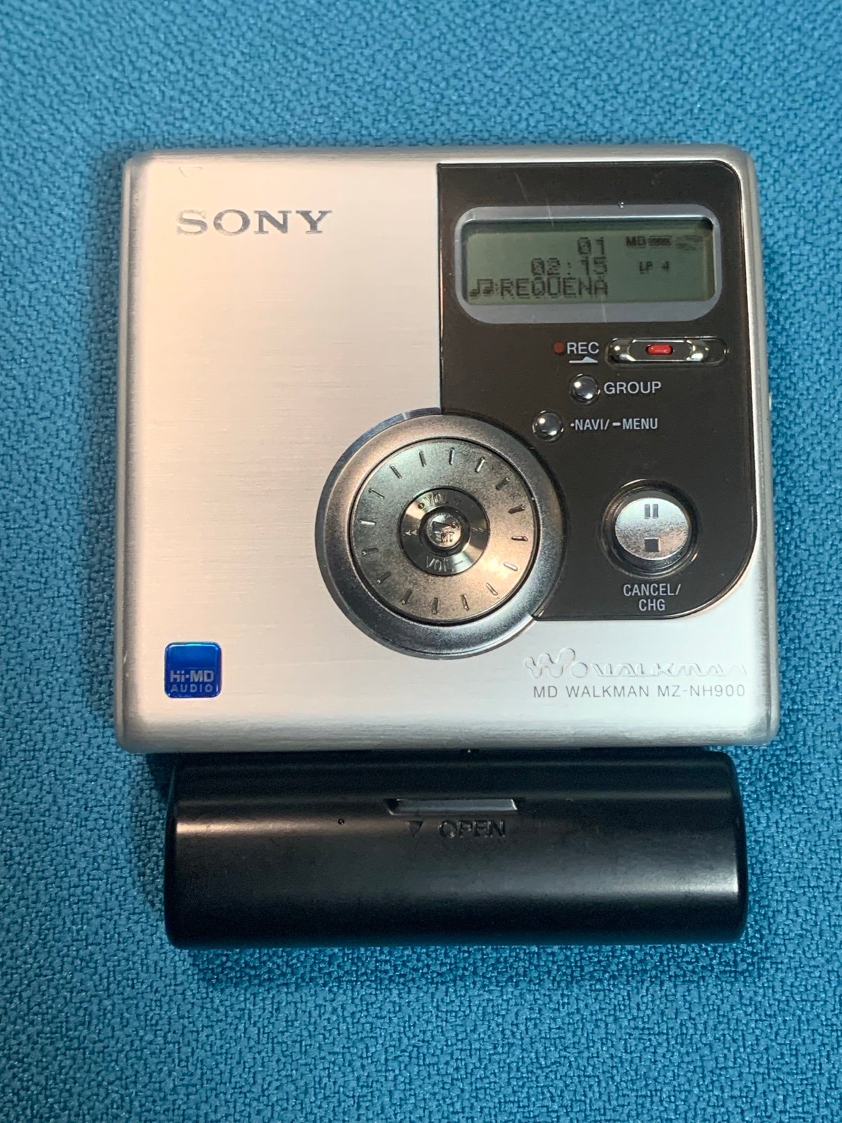 Sony Walkman MiniDisc MZ-NH900 Bundle in Pristine, like new, tested and working condition. Player itself is flawless, not a scratch on it or any battery corrosion in either compartment. Stick battery that slides into player accepts charge and works. Power supply needs to be cut, shrink rubbed and respliced. Includes remote headphone extension, dock, stick battery and charger, aux. AA batter holder, power supply, sealed 5pk of MD’s, 5 unsealed MD’s and a Sealed Sony 1GB HD MD. This disc alone sells for $50. From a pet/smoke free home.