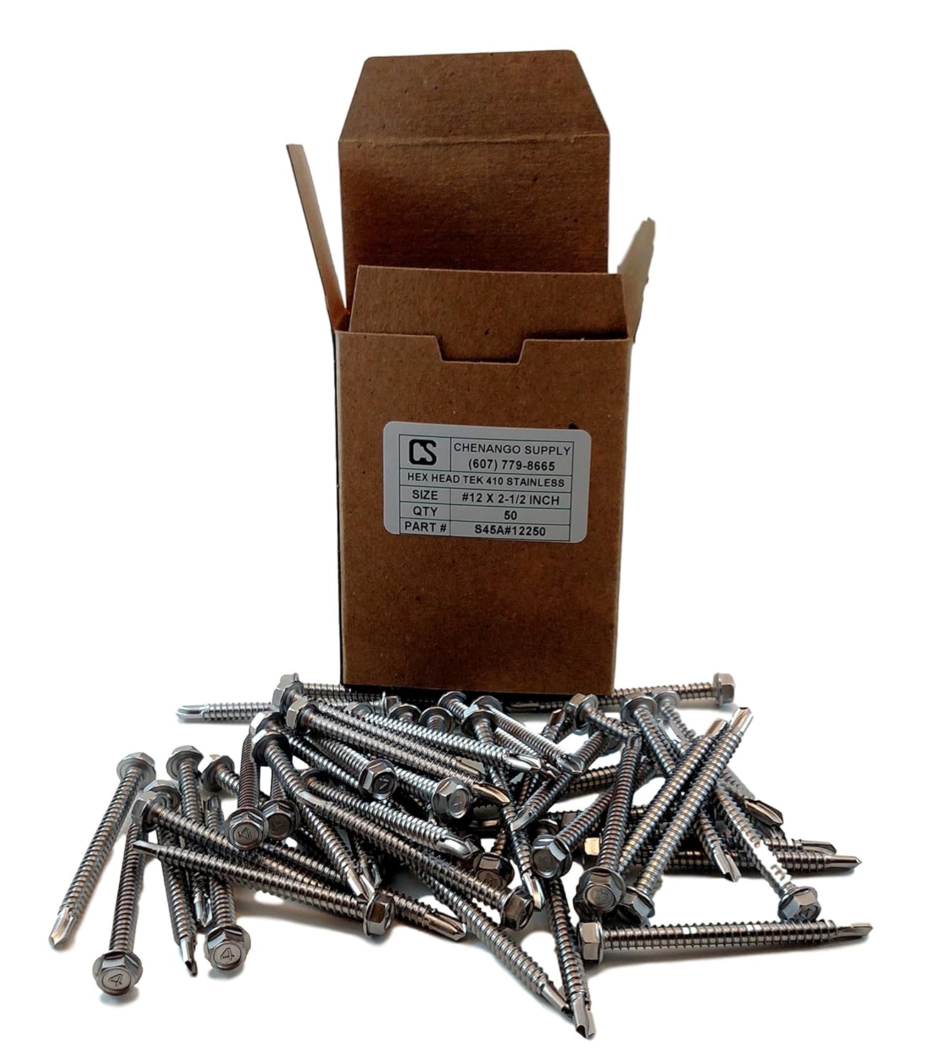 Stainless #12 x 2 Hex Washer Head Self Drilling Sheet Metal Tek Screws with Drill Point (1/2" to 2-1/2" Lengths in Listing), 100 Pieces (#12 X 2 INCH)