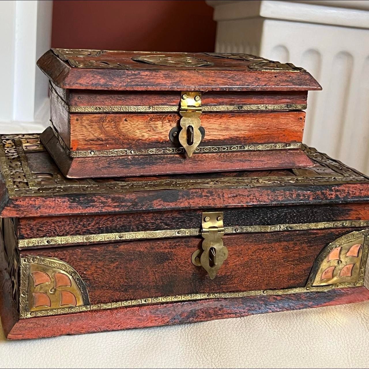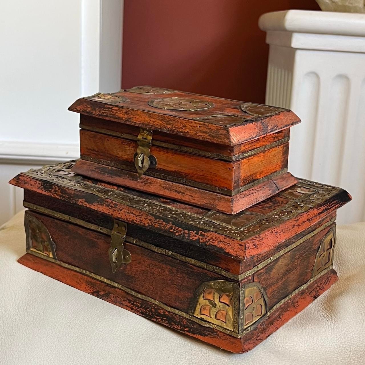 Vintage Wooden Brass Inlay hinged matching boxes.